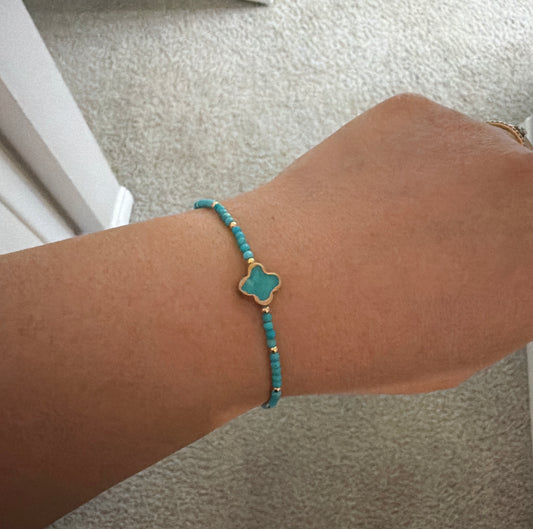 美國亞利桑那州特產 綠松石 2mm四葉草手串